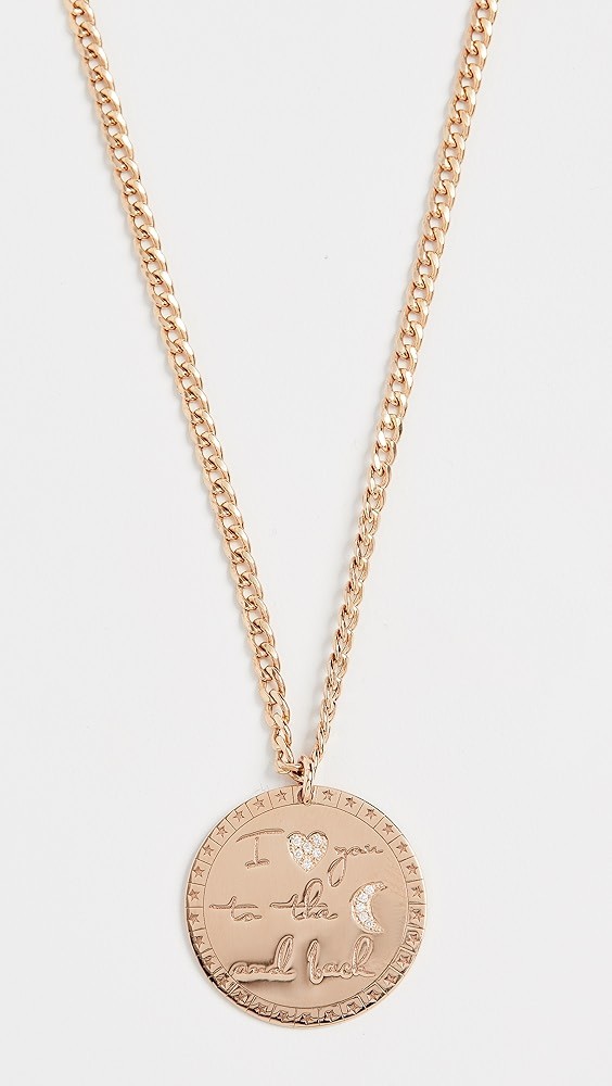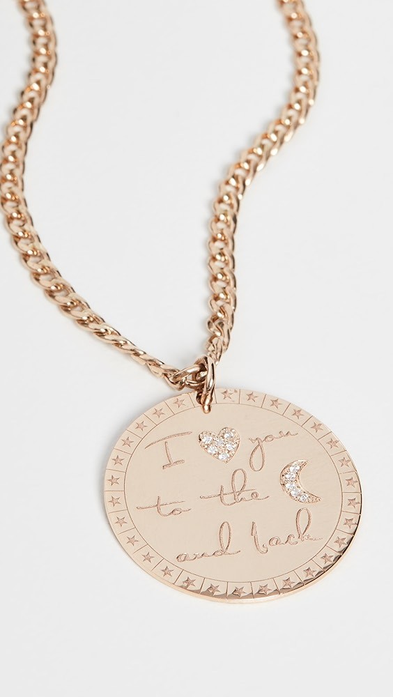 14k Large "I Love You to the Moon & Back" Mantra on Small Curb Chain Necklace