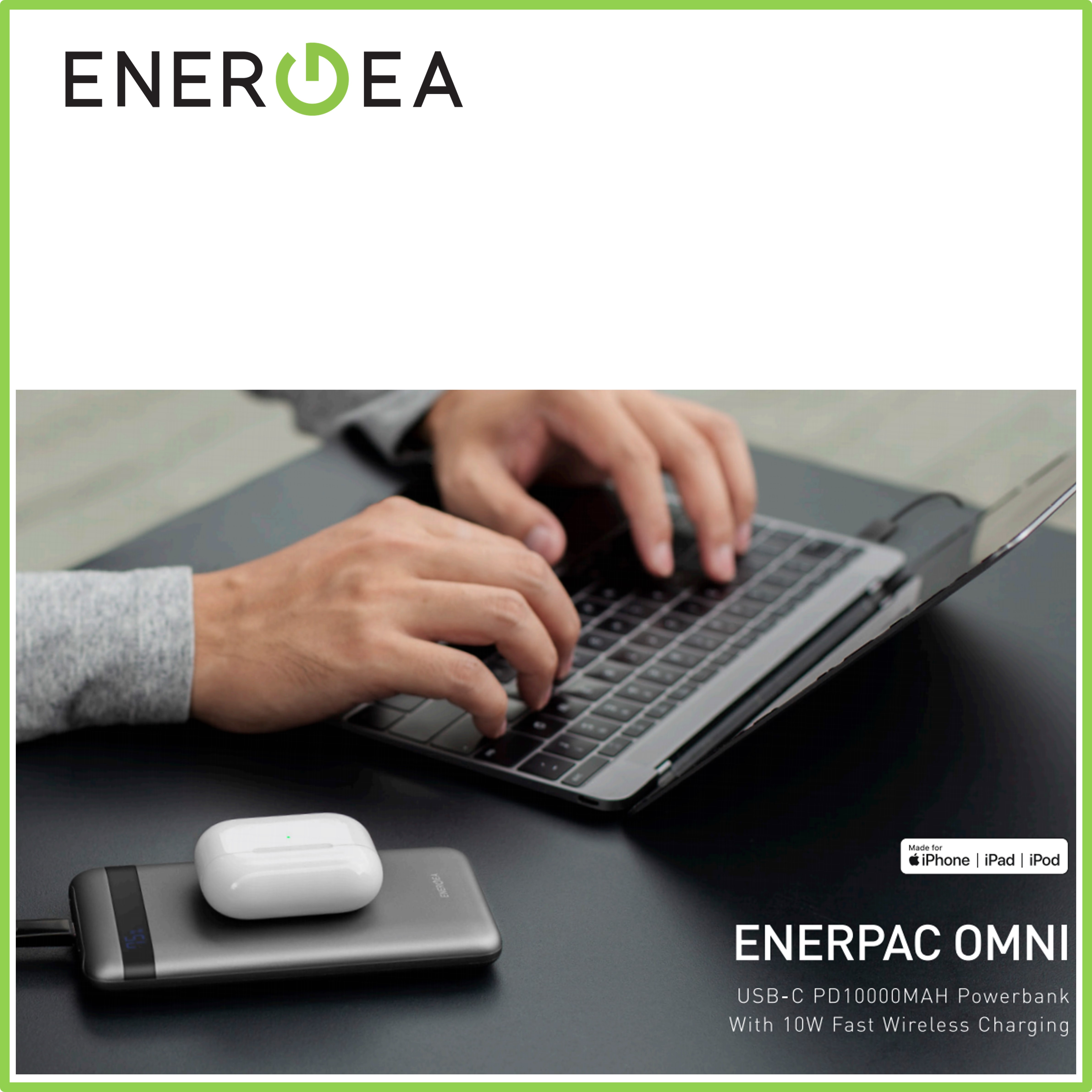 Energea Enerpac Omni 10000mAh Li-Polymer USB Type C PD Fast Wireless Charger + Lightning Input Power Bank (Gunmetal)