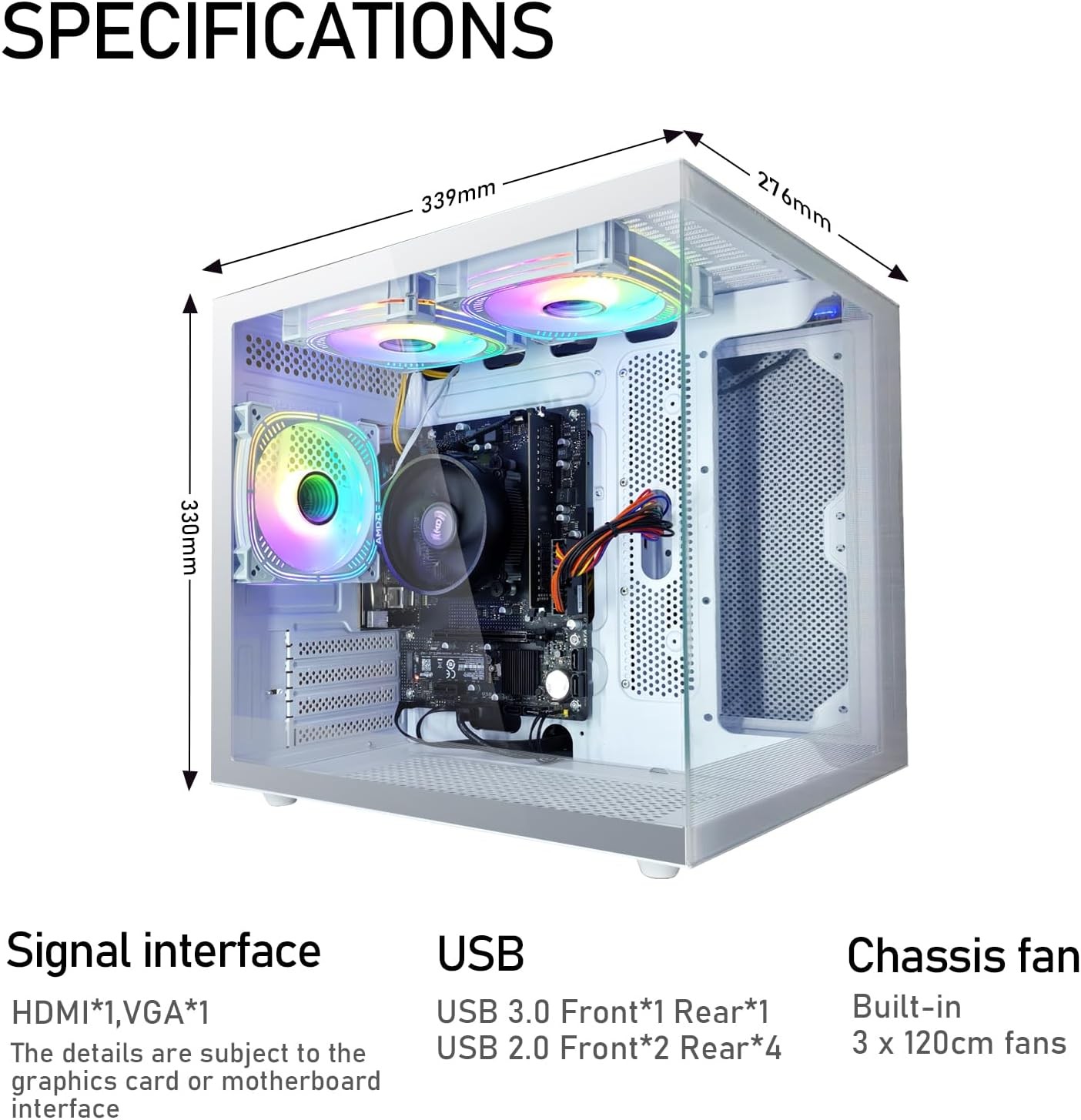 Thoughtful Design, Stylish Appearance: Explore unlimited possibilities with an innovative vertical desktop PC that combines versatility and power. Instead of a boring black box, it features a double-sided tempered clear glass panel with color-changing RGB FAN that blends perfectly into your space. The top is designed with multiple ports for you to connect your devices quickly and easily. With smooth airflow and lower noise levels, this tower PC computer stays quiet even when running at peak performance levels.